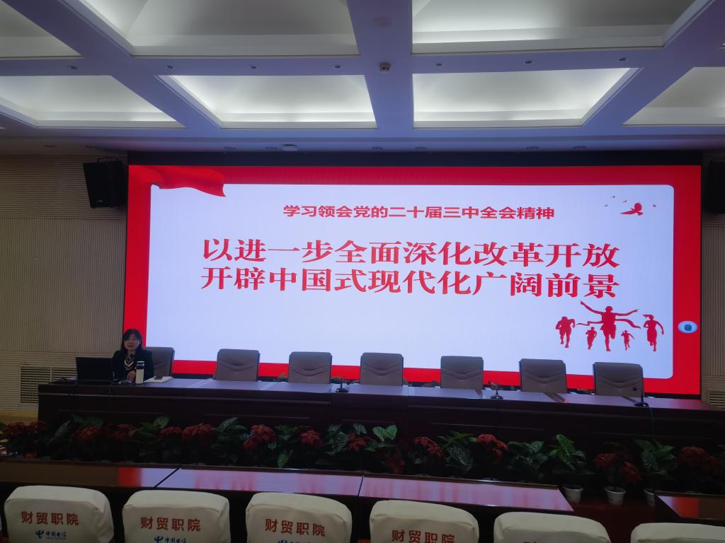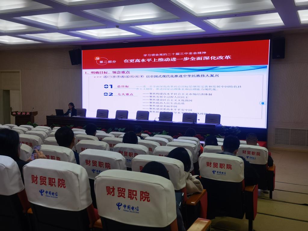 为深入贯彻落实党的二十届三中全会精神,10月28日下午教科系统党总支书记李志芳在砺志楼大报告厅讲授“以进一步全面深化改革开放 开辟中国式现代化广阔前景”专题党课,总支全体党员参加学习。