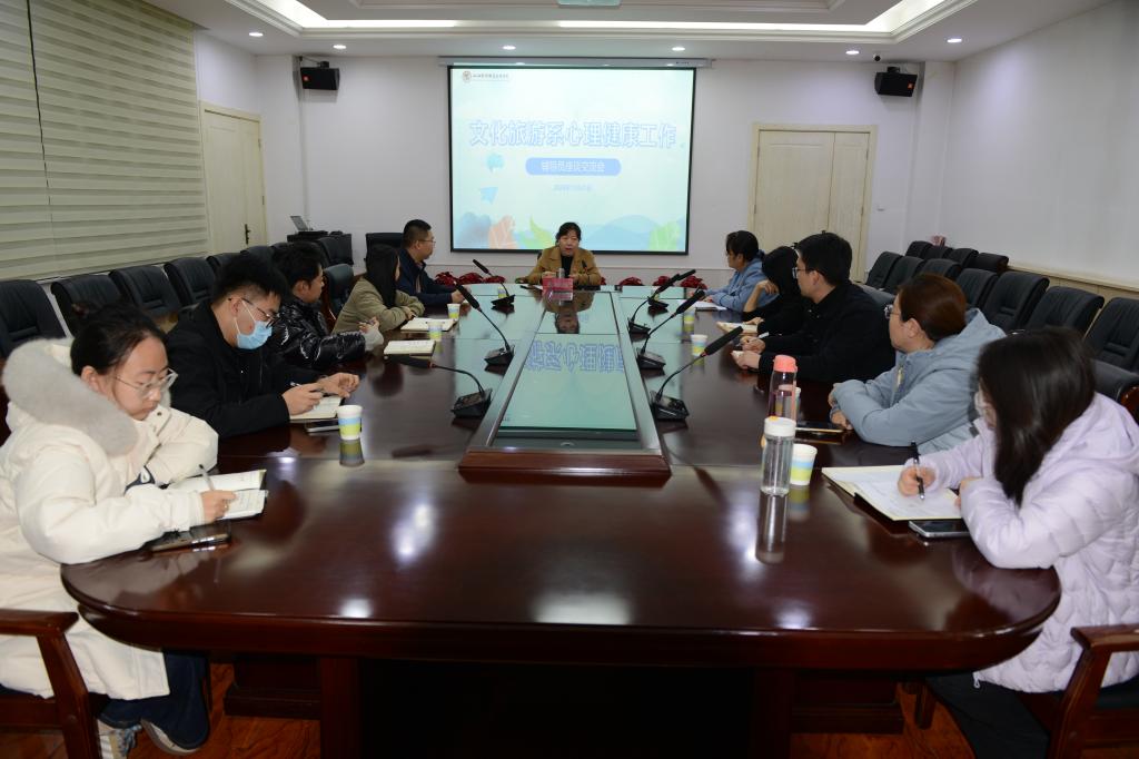 活动伊始,梁教授与文化旅游系全体辅导员在学院小报告厅进行了一场深入的交流座谈会。在座谈会上,梁教授分享了心理健康教育的最新理念和实践方法,辅导员们也就学生心理健康工作中遇到的问题与梁教授进行了深入探讨。此次座谈会不仅加强了辅导员队伍的专业能力,也为后续心理健康教育工作的开展奠定了坚实的基础。
