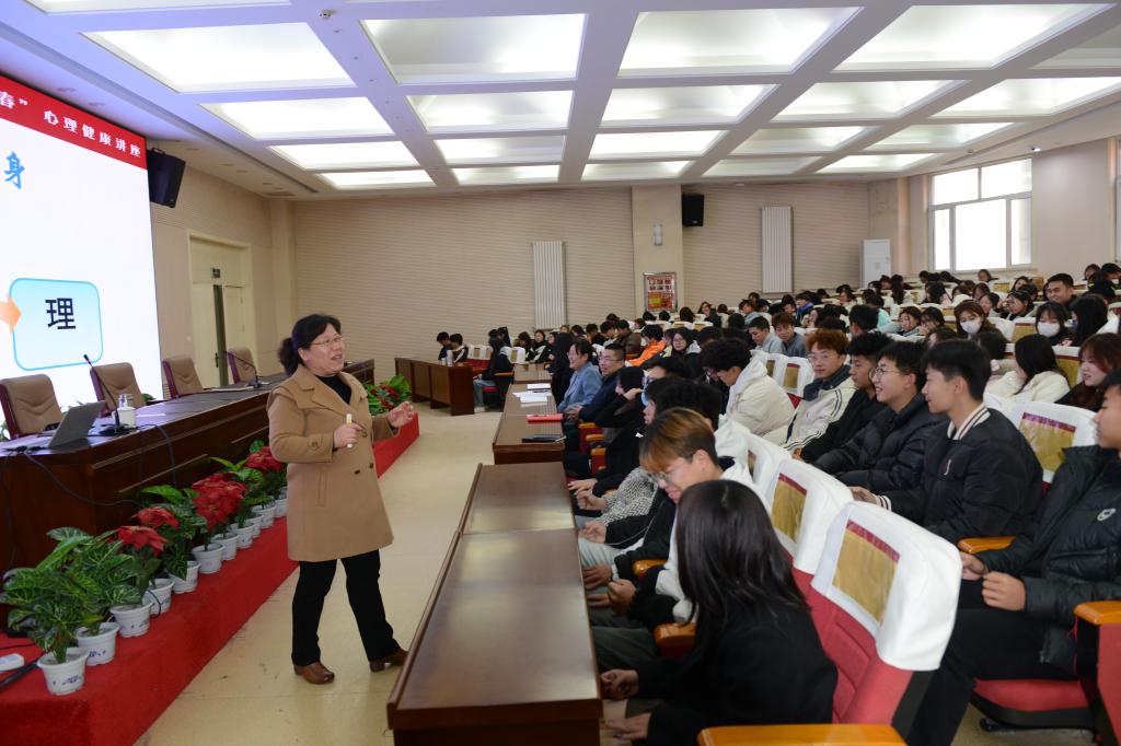 随后,梁教授面向全体新生和学生干部,围绕“我的大学”这一主题,从“目标、体验、心态、自我和谐”四个维度展开心理健康讲座。讲座中,梁教授通过大量视频资料、互动环节和实际案例,生动形象地向学生们展示了如何设定合理的大学目标、如何丰富大学生活体验、如何调整心态面对挑战以及如何实现自我和谐。她鼓励学生们要树立正确的人生观和价值观,学会自我调节,以积极的心态面对学习和生活中的挑战。
