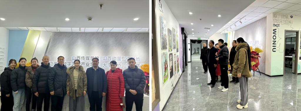 座谈会结束后,隋院长带领我院一行人前往位于晋中市榆次区金科·山西智慧科技城的山西传媒学院动画与数字艺术产业学院进行参观交流。产业学院企业导师展示了其在动画创作、数字艺术研究等方面的优秀产教融合成果,提供了直观的学习范例,激发了团队在艺术创作与产教融合方面的新灵感。双方还就联合开展科研项目、产业学院等合作形式达成了初步意向,期待通过整合资源,共同推动数字媒体艺术领域的科研创新与创作实践。