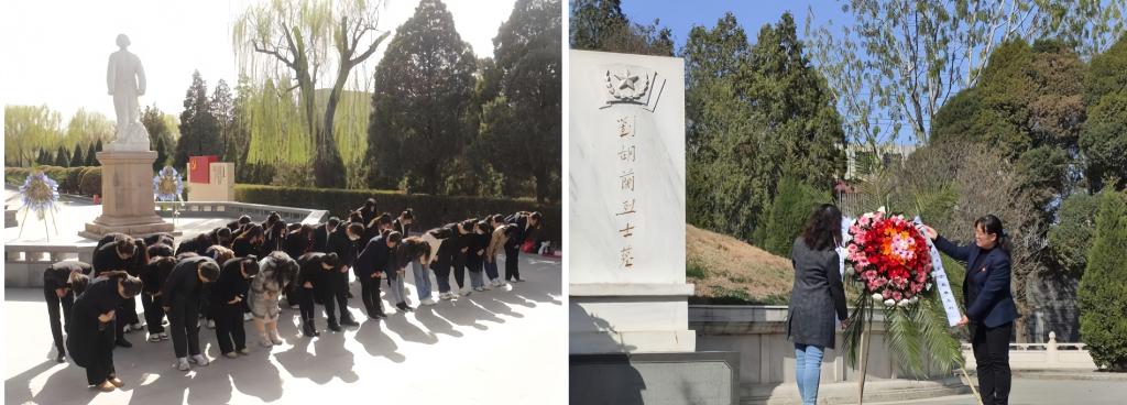 在刘胡兰烈士纪念碑前,全体师生列队肃立,怀着无比崇敬的心情向烈士鞠躬致敬,并敬献花篮,表达对烈士的深切哀思和崇高敬意。