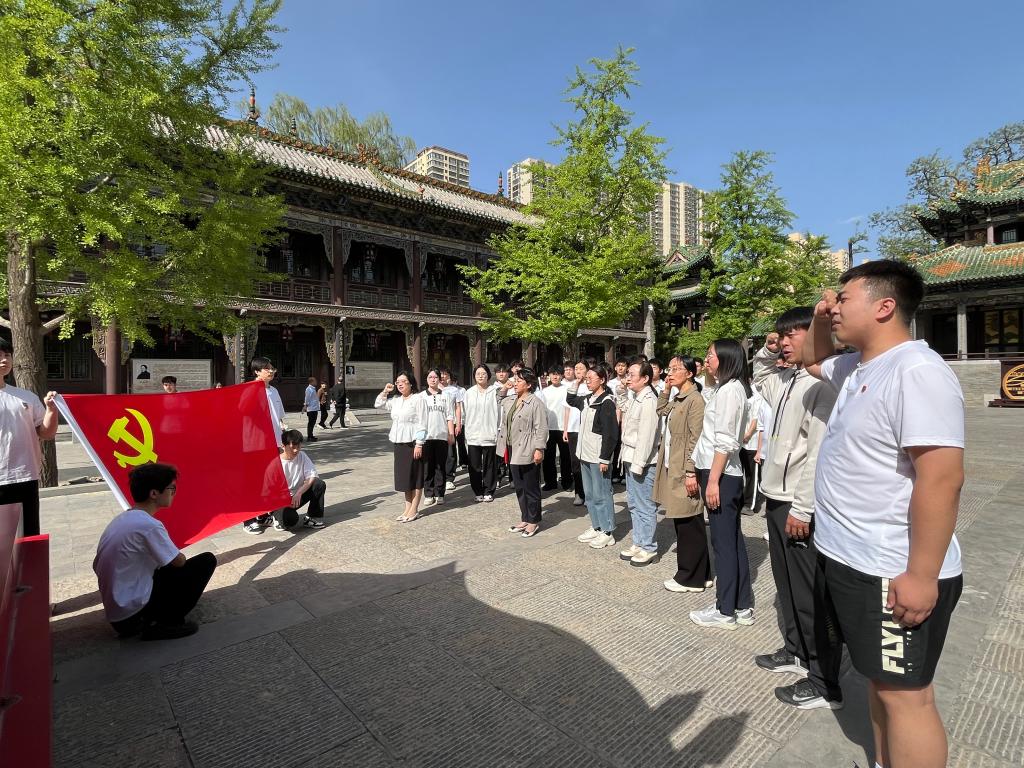 参观结束后,全体党员在纪念馆前重温入党誓词。面对鲜红的党旗,全体党员庄严地举起右拳,铿锵有力的誓言在纪念馆前回荡,表达了为共产主义事业奋斗终身的决心。