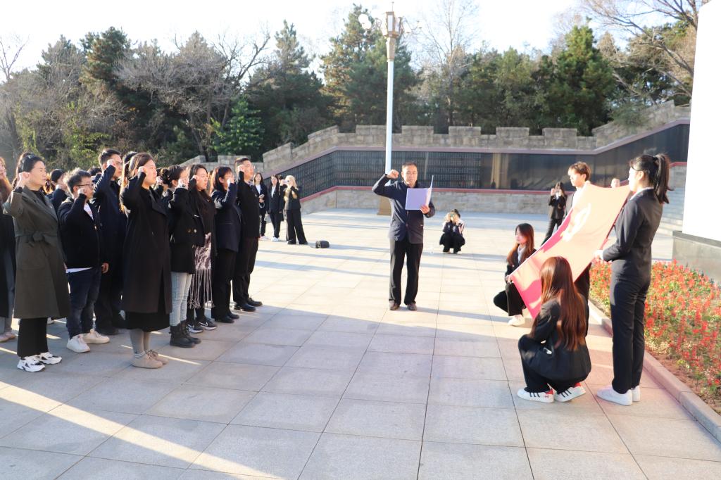 随后,全体人员在纪念碑前整齐列队,重温入党誓词,在工程艺术设计系党总支书记邢学军的带领下,党员们面向党旗,庄严宣誓。
