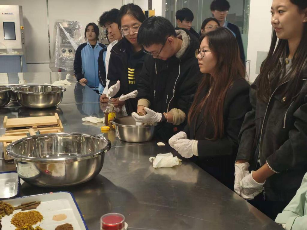 全体人员还共同参观了山西药科职业学院制药系粉针车间,实地感受实业发展的艰辛历程,进一步树立实干精神,筑牢践行初心使命的思想根基。在传统澡豆制作实践环节,大家分组动手体验,不仅加深了对中华优秀传统工艺的认知,更在实践中强化了党员的责任意识与使命担当,以实际行动践行文化传承与初心使命。