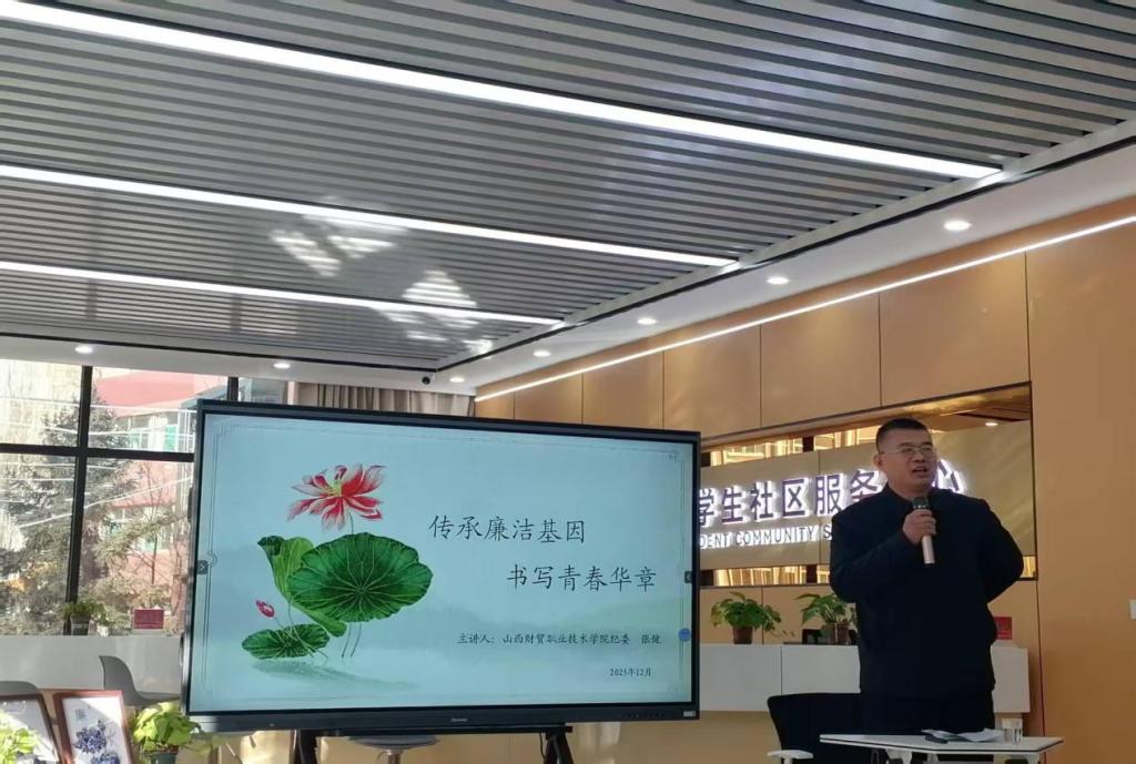 学院纪委专职纪检员张健从廉洁的内涵与意义、历史长河中的山西廉洁印记、当代山西的廉洁实践、校园里的廉洁微行动等方面,讲述了中华民族和山西地方廉洁文化的由来与发展,通过于成龙、裴氏家训等清廉故事,以及发生在大学生身边的违规违法典型警示案例,教育引导同学们要诚实守信、踏实求学、勤俭节约、守住底线,尤其是学生干部,在协助老师开展校园活动、评奖评优等过程中,要做到公开透明,公平公正,不义之财,分文不取,经受住廉洁考验,并结合物联网专业的特点,强调在学习过程中,要以信为本,保持数据的真实性,杜绝投机取巧、抄袭代码等行为的发生,并勉励大家在物联网的世界里,不仅要做连接万物的“技术达人”,更要做守护廉洁的“品格标杆”!