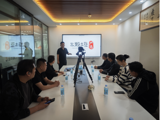 为深化校企合作,促进产教融合,把脉直播电商人才的社会需求,2025年4月25日上午,经济贸易系党总支书记郭志宇、主任刘军、党总支副书记杨晓溪、副主任吕盾、专职辅导员夏海鹏一行五人于前往山西三颗土豆供应链管理有限公司,进行深入的调研与交流。此次访问旨在深化校企合作,探讨构建多元化的人才培养模式,拓展学生的就业渠道,进而推动毕业生的高质量就业。